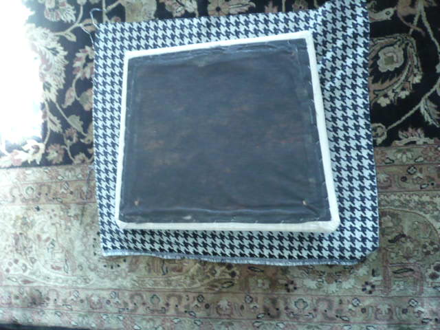 Place the right side of the fabric on the floor and put the right side of you seat cover on top of it. (You'll be looking at the wrong side of your fabric and the underside of your seat.)